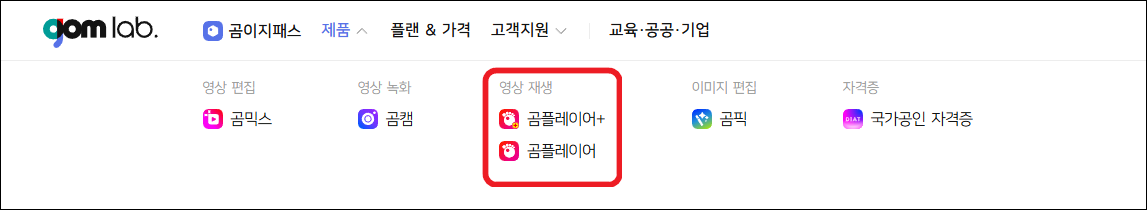 - 곰플레이어 공식 사이트 → 곰플레이어 무료버전 다운로드 메뉴